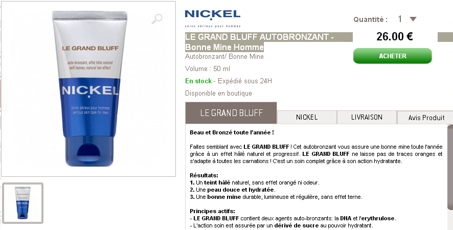 NICKEL: LE GRAND BLUFF AUTOBRONZANT – Bonne Mine Homme pour 26€ les 50 ml