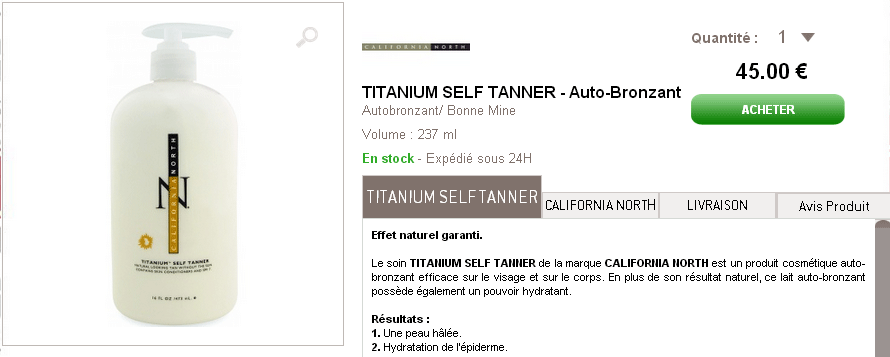 CALIFORNIA NORTH, TITANIUM SELF TANNER – Auto-Bronzant pour 45€