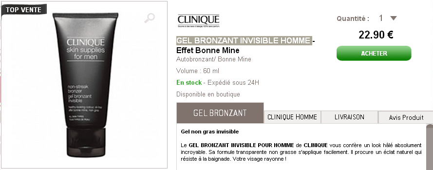 GEL BRONZANT INVISIBLE HOMME Clinique Hommes pour 22,90€ les 60 ml