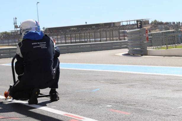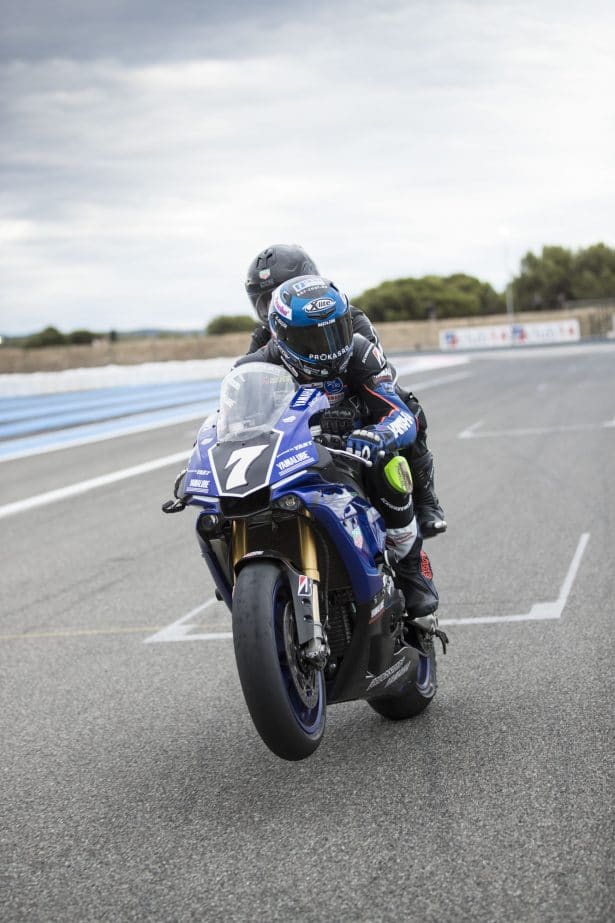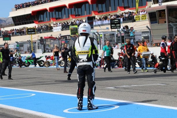 La première surprise que nous réservent l’équipe TAG Heuer et Eurosport Event c’est un baptême en passager à plus de 300km/h avec un ancien pilote. Autant vous dire que nous n’étions pas très sereins au moment de revêtir tout l’équipement. Comment tenir sur un mini siège derrière un pilote qui conduit plein gaz ? Pas le temps de réfléchir, démarrage en trombe, roue arrière d’entrée de jeu et énorme freinage à l’entrée du virage. Croyez-moi il faut avoir l’estomac et les mains bien accrochés sur le guidon passager faute de quoi vous risquez de rester au bord de la piste.