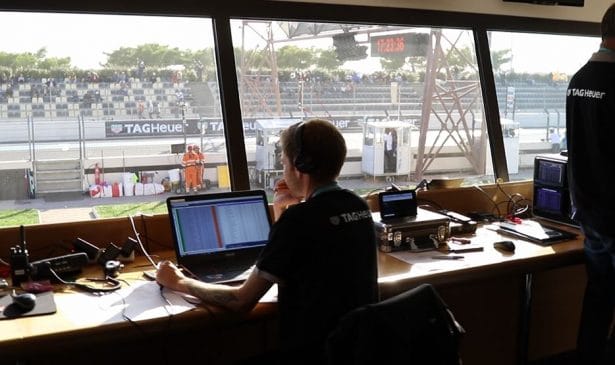 Juste en face de la ligne de départ, l’équipe du time keeping se relaye 24h/24 pour garantir le chronométrage le plus précis possible. En tout, une dizaine de personnes sont chargées du chronométrage à l’aide du top de la technologie de pointe TAG Heuer.