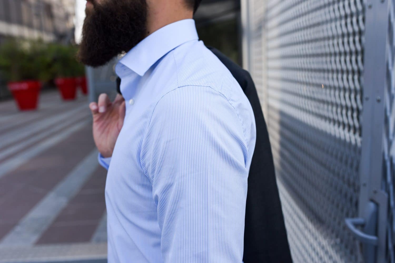 [dropcap]L[/dropcap]e temps d’une séance photo dans Paris, j’ai eu l’occasion de mettre à l’épreuve ma nouvelle chemise business fit GIOTHO. Mon choix s’est porté sur le modèle Mash bleu ciel. Coupe ajustée – Business fit – Col cutaway, cette chemise 100% en popeline de coton et tissu double retors se caractérise notamment par son élégance.