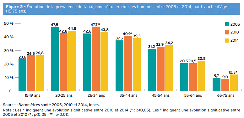 En 2014, les fumeurs masculins les plus réguliers ont entre 20 et 25 ans.