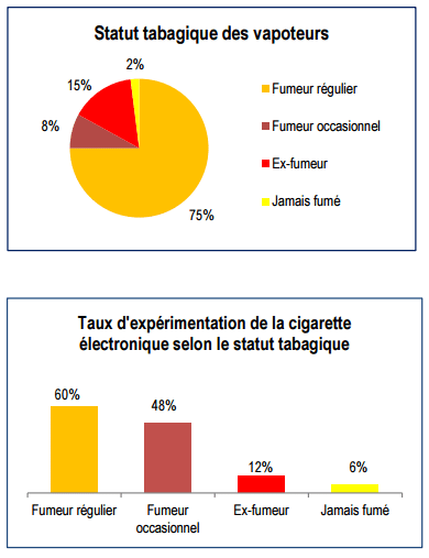 [dropcap]L[/dropcap]a cigarette électronique est en plein essor et tend à se développer chez les fumeurs quotidiens et occasionnels. 26% des fumeurs qui ont essayé la cigarette électronique sont des hommes plutôt jeunes. 98% des vapoteurs sont des fumeurs ou des ex-fumeurs