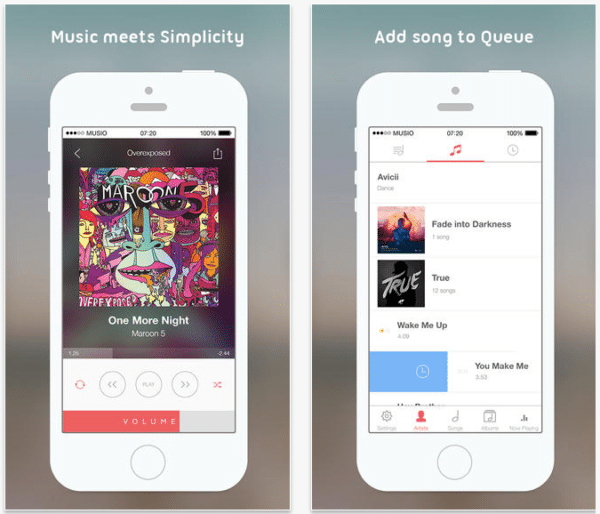[dropcap]M[/dropcap]usio est une autre application de musique utile. Musio utilise votre bibliothèque iTunes locale et est intégrée avec iTunes Match. L’application a le même aspect que l’application Apple Music mais elle vous permet de créer une file d’attente et de contrôler vos chansons. Quand vous prenez la version payante de Musio, vous avez accès à toutes les listes d’écoute iTunes et vous pouvez faire glisser pour créer une file d’attente.