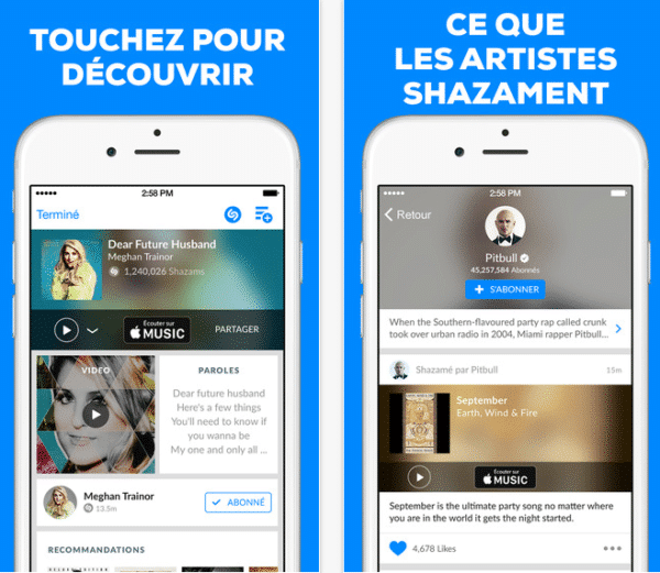 [dropcap]A[/dropcap]vez-vous jamais entendu une chanson et souhaité que vous connaissiez le titre ? Alors, vous avez besoin de Shazam. C’est est une application qui reconnaît de la musique et des émissions de télévision autour de vous en quelques secondes. C’est la meilleure façon de découvrir, d’explorer et de partager de la musique et des émissions de télévision que vous aimez. Comment cela marche ? Quand vous voulez connaître le titre d’une chanson et son chanteur, vous devez démarrer l’application et cliquer sur le bouton : on dit Shazamer J. Shazam reconnaîtra la chanson ou l’émission de télévision et vous donnera le titre et son interprète. L’application vous donne également la possibilités d’acheter le titre que vous venez d’entendre et de Shazamer.