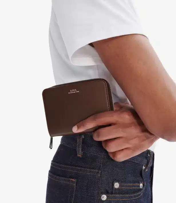 Optez pour un cuir pleine fleur, qui offre une finition sophistiquée et une excellente durabilité. Les couleurs tendance incluent le cognac, le noir classique ou le bleu marine pour un look intemporel. J’aime également la collection couleur vert pin de la maison A.P.C à découvrir ici : A.P.C. petite maroquinerie homme