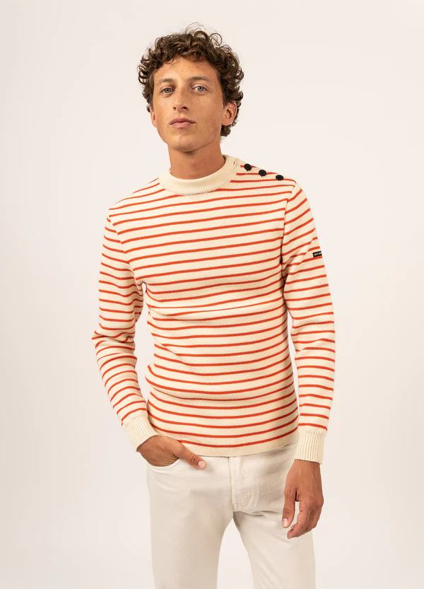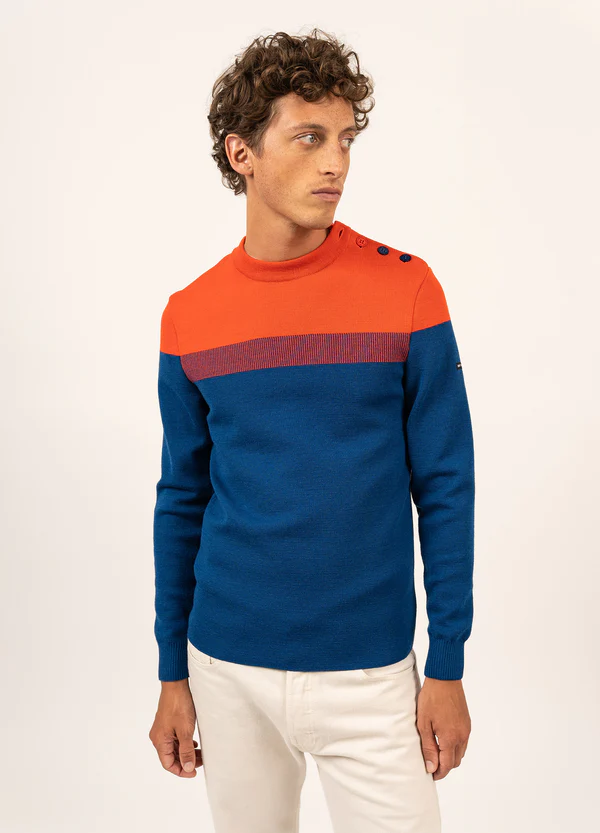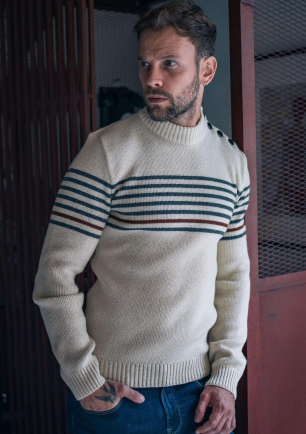 Le pull marin en laine est un vêtement traditionnellement porté par les marins et les pêcheurs en mer pour se protéger du froid et de l’humidité.