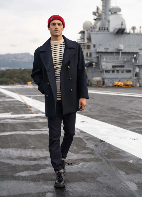 Ce sont des grands classiques du vestiaire masculin mais également féminin. Je pense notamment en premier lieu à la marinière. Je pense également au gros pull marin avec ses boutons au niveau de l’épaule. Je pense bien sûr au caban mais aussi à la vareuse.