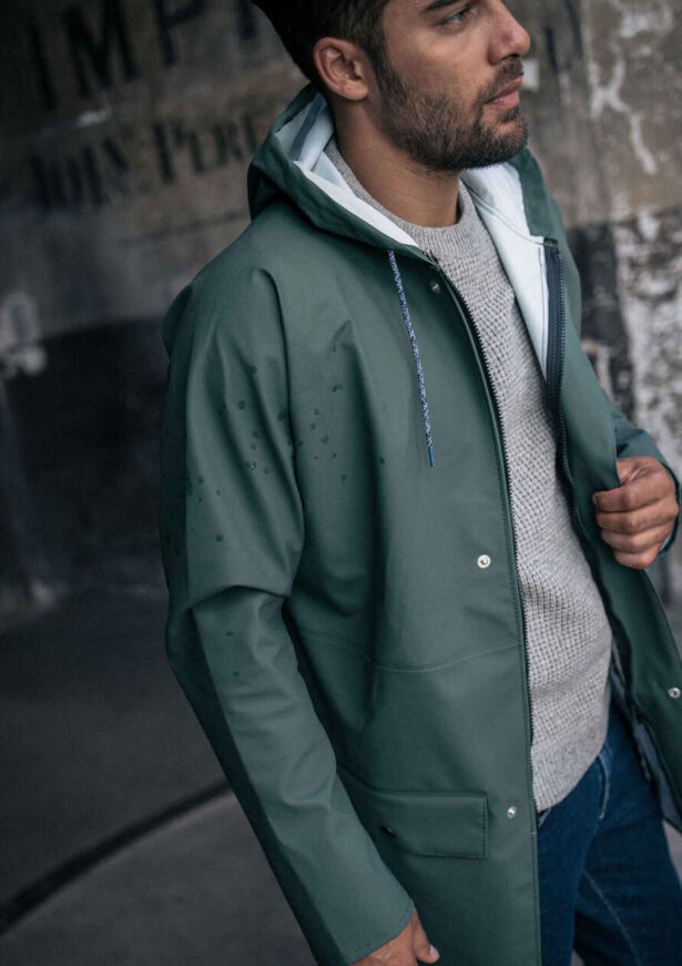 Le ciré jaune est lui aussi un vêtement de pluie emblématique du look marin.