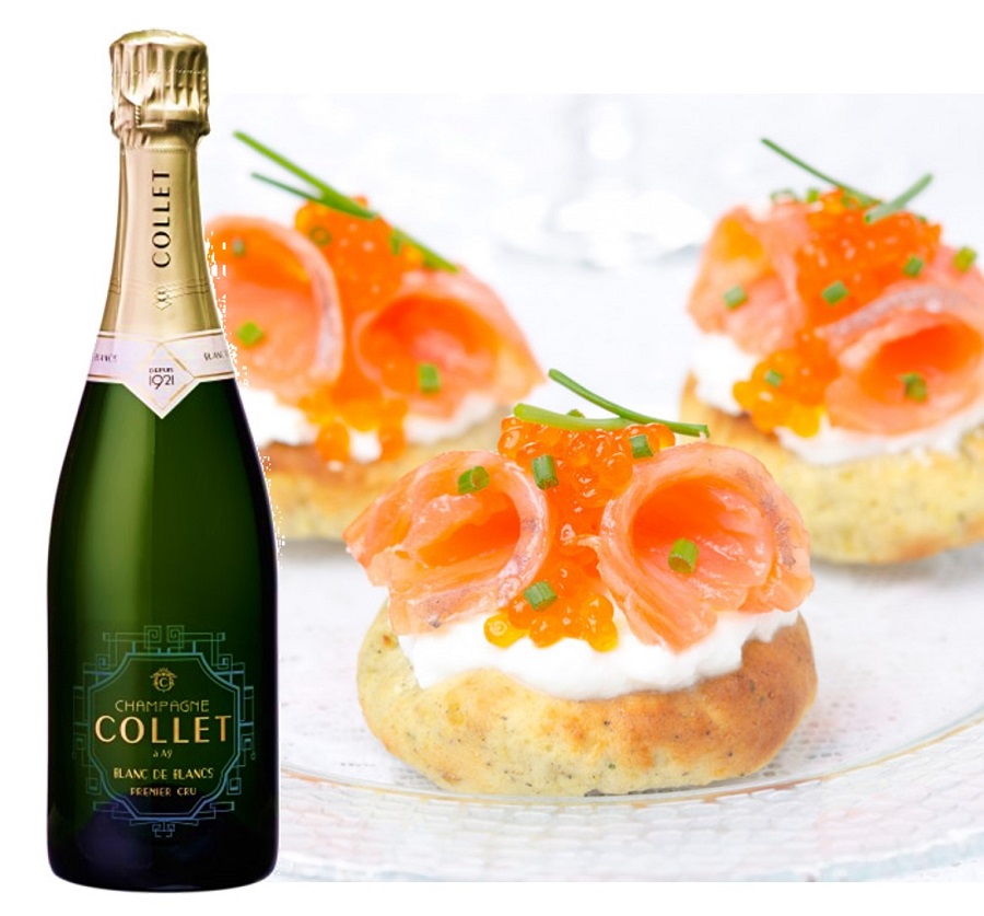 Recommandation : Champagne COLLET, cuvée Blanc de Blancs Premier Cru à 36€. Ce champagne généreux et souple est exclusivement élaboré à partir du cépage blanc Champenois, le Chardonnay, essentiellement issu des terroirs de la réputée « Côte des Blancs ». Ce vin mono-cépage se distingue par une finesse et une élégance exceptionnelles. Acheter ce Champagne ici >>