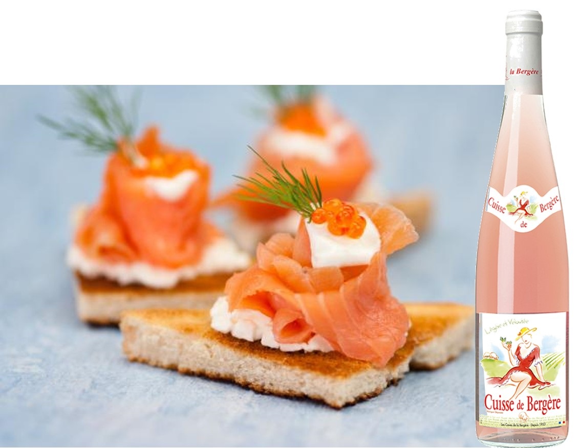 Pour accompagner cela, misez sur de petits toast de poissons légèrement fumés type saumon, truite ou anguille servis sur toasts pourquoi pas légèrement badigeonnés de crème fraîche et humectés d’une goutte de citron et saupoudrés de copeaux de ciboulette. Mon favori reste bien entendu le saumon qui en principe doit fondre dans la bouche tout en apportant une fraicheur océanique irrésistible.