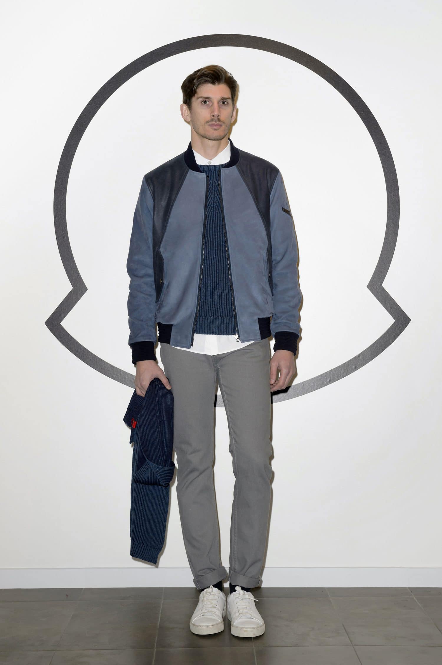 [dropcap]L[/dropcap]es formes soulignent une silhouette longiligne, fuselée : les bombers sont ajustés, les blousons près du corps, le manteau ¾ enveloppant mais droit, les chemises dessinent le buste, les pantalons font la jambe fine. Du cuir, nubuck ciré ou non et de l’agneau plongé, du drap de laine beaucoup, de la popeline, de la maille anglaise avec des jeux de fils et de côtes pour des effets bicolores, et une casquette pour la touche finale.