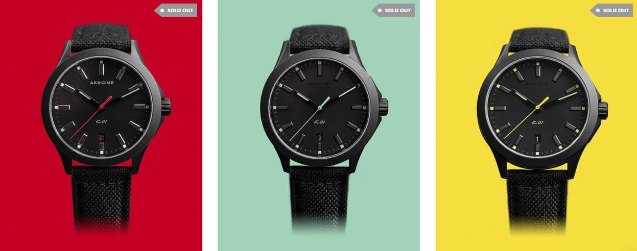 Depuis sa création l’équipe AKRONE à sortie 4 modèles de montres automatiques (sans compter les éditions très limitées) bien différentes les unes des autres en matière de style. La K-01, sobre, élégante et passe partout avec des touches de couleurs acidulées, a séduit les 300 premiers chanceux par son style, ses finitions et son boitier en céramique d’une finesse rare.
