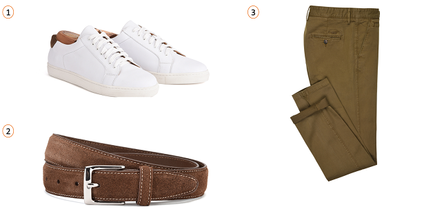 Lors de l’approche du temps estival, il vous arrive de troquer les chaussures pour les sneakers (en blanc si vous ne savez pas quoi choisir). Mais faut-il ainsi utiliser une ceinture blanche ? Non, elle risque de faire kitch, ou de se tâcher. Optez pour une ceinture décontracté en cuir, avec un chino et des sneakers, cela fait une tenue élégante et parfaite pour le week-end.