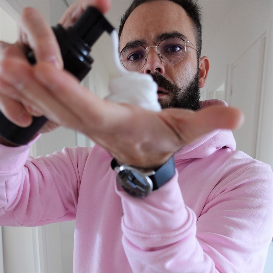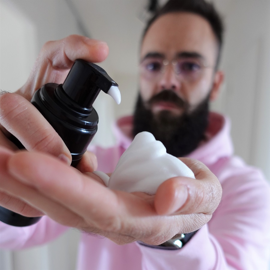 - Pour assainir les poils de votre barbe et la peau en dessous de la barbe, l’atelier propose une mousse nettoyante sans rinçage. Cette mousse dense est parfaite pour nettoyer une grosse barbe. Elle laisse les poils frais et propres.