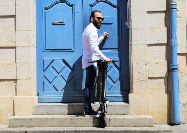 - J’adore son côté pratique, son système de pliage en 1 » seconde sans prise de tête. J’apprécie beaucoup son design novateur et sobre, il est parfait même si je me déplace en costume-sur-mesure ! Et avec sa vitesse possible jusqu’à 25km/h, j’arrive à l’heure à mes rendez-vous tout en restant prudent et attentif à mon environnement !