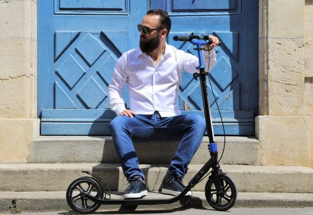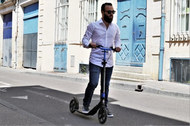 Vous le savez, je ne suis pas un fanatique des objets bling-bling ou tape à l’œil. J’aime les objets de qualité et qui savent rester élégants. Du coup, je cherchais quelque chose de sobre et épuré pour la trottinette qui allait m’accompagner dans mes déplacements. C’est chose faite avec cette trottinette noir et bleu métallisé. Elle sait se faire discrète et se fondre dans le paysage urbain. Côté style elle se marie avec toutes les tenues. Si vous avez une couleur de prédilection, rendez-vous sur le site de la marque qui propose un large choix de couleurs : gris, rouge ou bleu pour ce modèle par exemple.