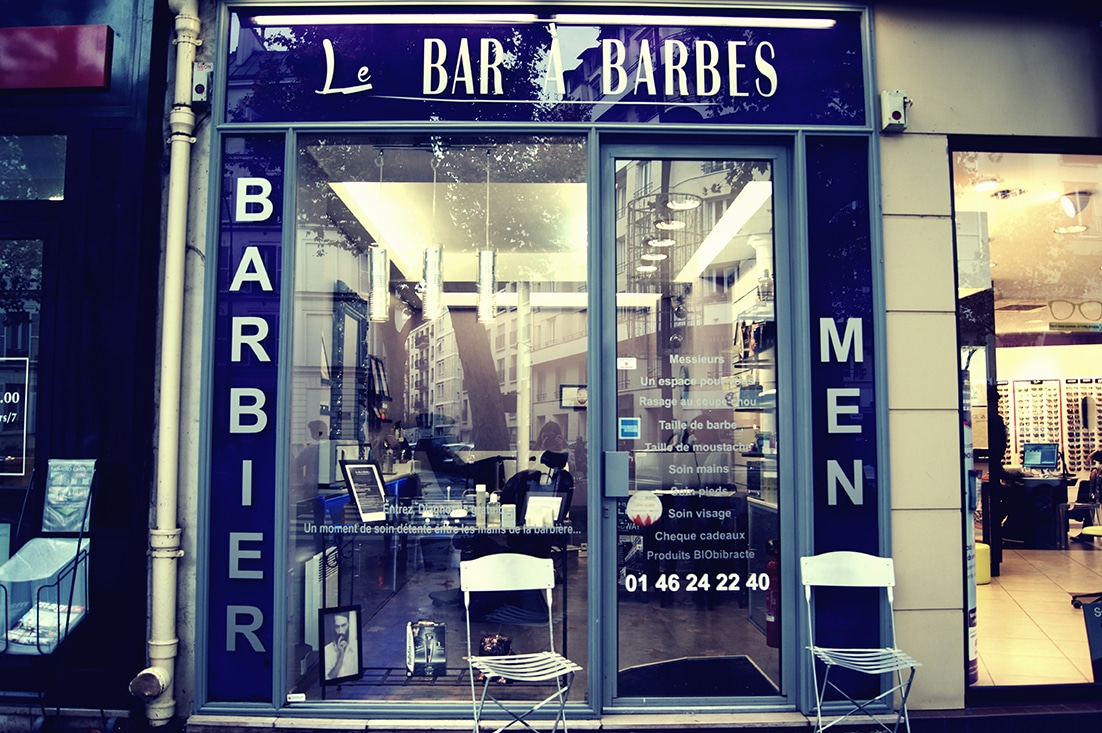 Voici le Bar à Barbes, un petit salon qui a récemment ouvert sur Neuilly. Le concept est typiquement masculin, il propose des événements dignes d’un vrai bar. Le barbier se nomme Jillson, il s’occupe des tailles et coupes de barbes. Il a été formé par Mr Laffite, un grand barbier avec plus de 50 années d’expertise.