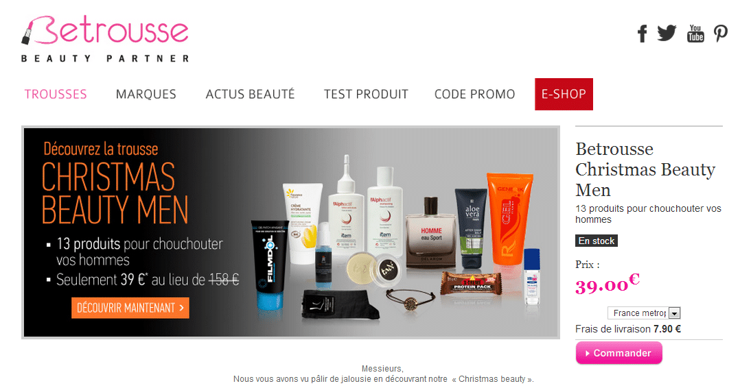 Pour vous y aider, le site Betrousse.com vous propose une box beauté pour hommes, contenant un éventail de produits de qualité à vous procurer à un prix imbattable. Vous trouverez à l’intérieur de cette boîte magique une multitude d’articles pour être le plus beau durant les fêtes. Si vous êtes une femme et que vous en avez assez que votre homme vous pique vos produits de beauté, offrez-lui les siens !