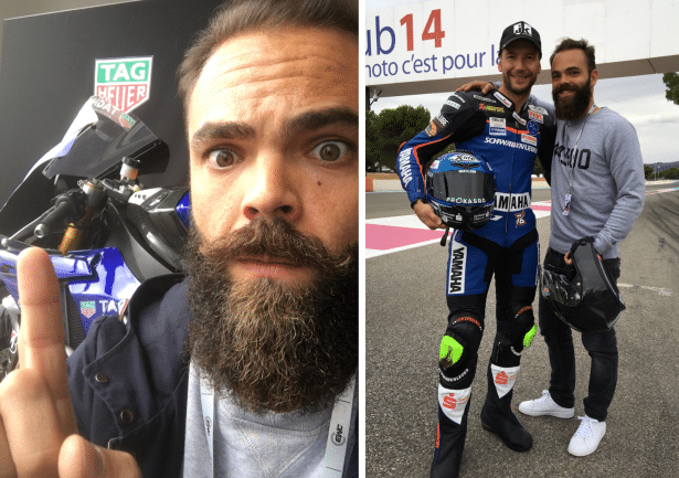 La première surprise que nous réservent l’équipe TAG Heuer et Eurosport Event c’est un baptême en passager à plus de 300km/h avec un ancien pilote. Autant vous dire que nous n’étions pas très sereins au moment de revêtir tout l’équipement. Comment tenir sur un mini siège derrière un pilote qui conduit plein gaz ? Pas le temps de réfléchir, démarrage en trombe, roue arrière d’entrée de jeu et énorme freinage à l’entrée du virage. Croyez-moi il faut avoir l’estomac et les mains bien accrochés sur le guidon passager faute de quoi vous risquez de rester au bord de la piste.