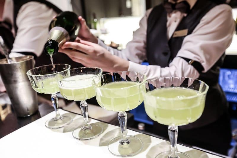 Comptez 18€ pour une coupe de champagne, à partir de 19€ pour les bouchées apéritives et 25€ pour les cocktails.