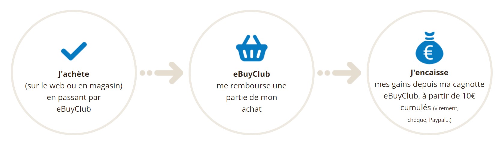 Le principe est simple comme « Bonjour ». En passant par la plateforme eBuyClub, je cherche mon marchant préféré. Je choisis le type de cashback qu’il me faut, puis je réalise mon achate en ligne sur le site marchant.