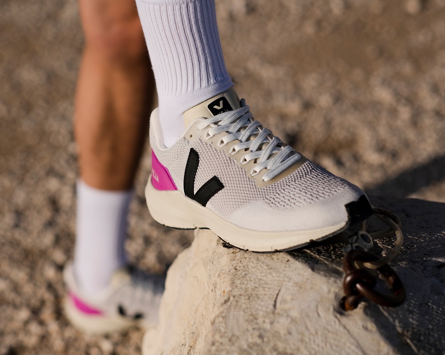 Une paire de running VEJA d’origine bio-sourcée et recyclée