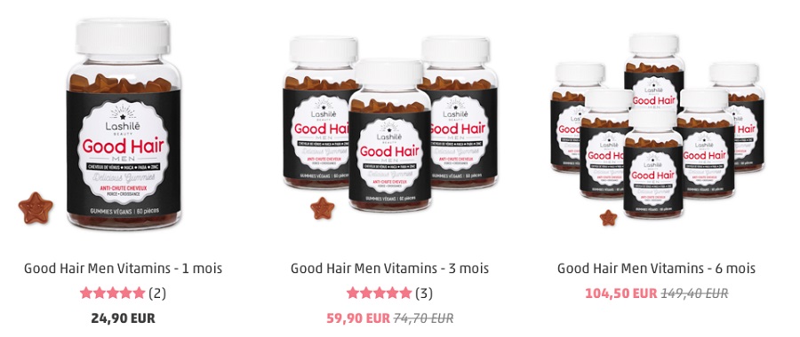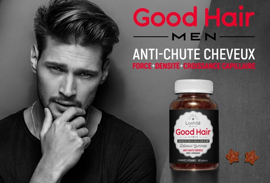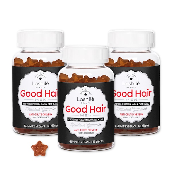 Lashilé Beauty est un laboratoire nutricosmétique, qui grâce à ses gummies aux formulations différentes et aux gouts uniques, purifie le corps, hydrate la peau, favorise la perte de poids, booste le teint, permet un endormissent naturel… GOOD HAIR MEN est la première offre masculine de Lashilé Beauty, qui va bientôt proposer aux messieurs un complément alimentaire pour barbe (GOOD BEARD) et libido (GOOD LIBIDO). J’aurai besoin de tester uniquement le premier…