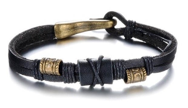 Le Bracelet cuir et bronze : Nous sommes en présence d’un homme relativement mystérieux, le regard noir mais ténébreux. Un air un peu sauvage, aventurier, qui aime partir à la conquête du globe et des anciennes civilisations…C’est un voyageur qui a les pieds sur terre et qui porte seulement des bijoux discrets mais assez visibles pour faire ressortir sa personnalité.
