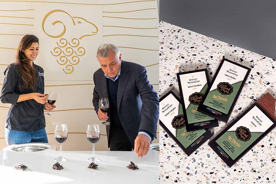 Bien entendu, rien n’est laissé au hasard. À chaque vin correspond une tablette de chocolat, minutieusement confectionnée pour être son binôme gustatif. La combinaison est parfaite, entre les notes aromatiques de quatre appellations bordelaises et les essences de fèves de cacao du monde entier.
