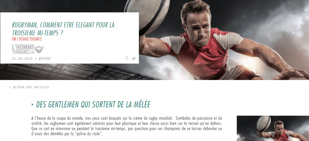- Portez des vêtements solides et auxquelles vous ne tenez pas forcément : En effet, le rugby est avant tout un sport de contacts et de luttes âpres et viriles. A partir d’une certaine heure vous allez très vite vous rendre compte que ces contacts sont également présents en dehors des terrains. Que ce soit en dansant, en discutant ou en titubant méfiez-vous des impacts et des tirages de maillots un peu brutaux. Je passe bien sûr les éventuels verres de bière ou autre renversés sur le polo ou la chemise au cours de la soirée. Pour vous intégrer plus facilement et vous mettre dans l’ambiance, optez tout simplement pour un polo de rugby. On en trouve de très sympas chez Eden Park ou Ruckfield par exemple.