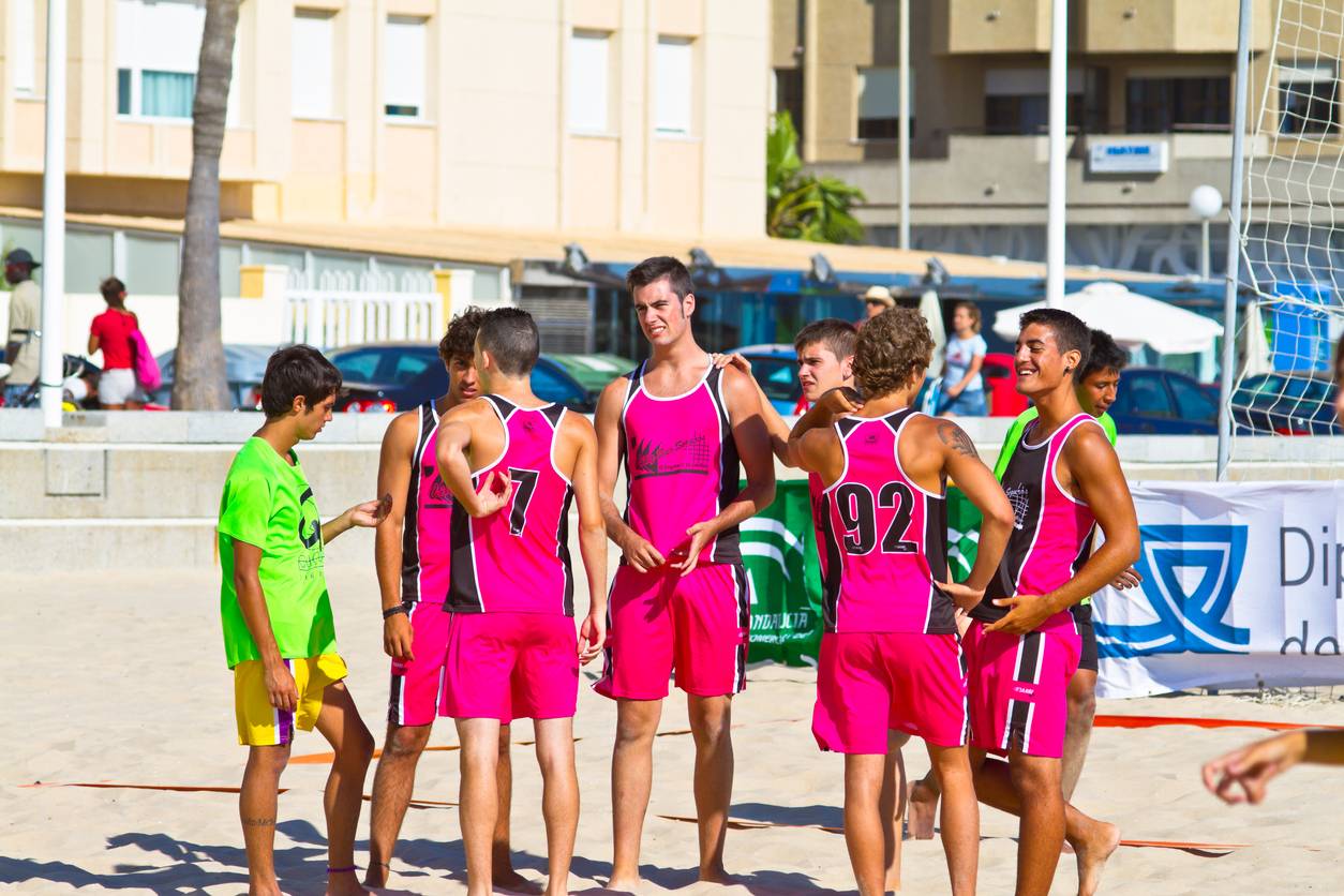 Le handball se joue sur terrain découvert ou en intérieur de 40×20 m, avec des contours composés par des lignes de touches et de sortie de but. Il est séparé en 2 camps par une ligne médiane, tandis que chaque but est délimité par un demi-cercle nommé « la zone » dans laquelle évolue le gardien.