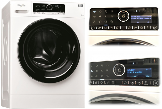 Je viens justement d’en changer suite à mon récent déménagement. J’ai jeté mon dévolu sur une machine de compétition et au rapport qualité-prix correct : la WHIRLPOOL ZEN8. Le nom est déjà plein de promesses. Laver son ligne sans se prendre la tête, c’est exactement ce qu’il me faut. Il me fallait aussi une machine qui s’ouvre par l’avant sur laquelle je puisse poser un sèche-linge, une machine facile à utiliser, intuitive, silencieuse dans laquelle je peux tout laver.