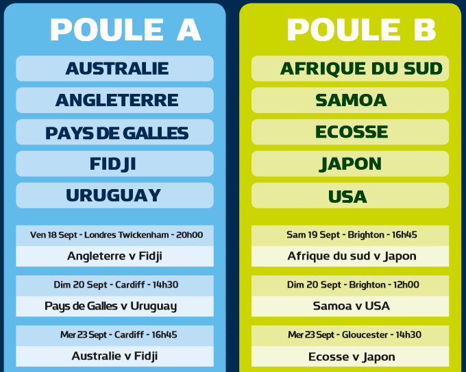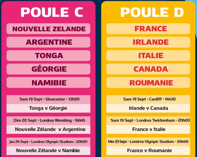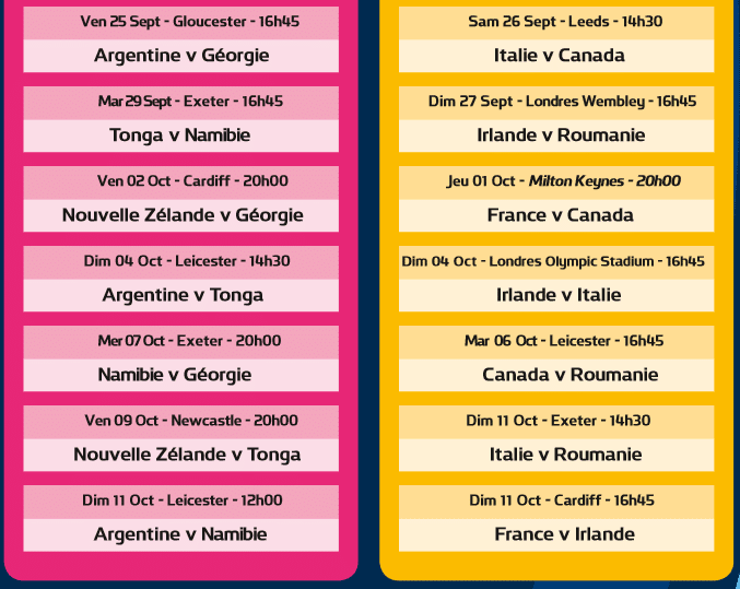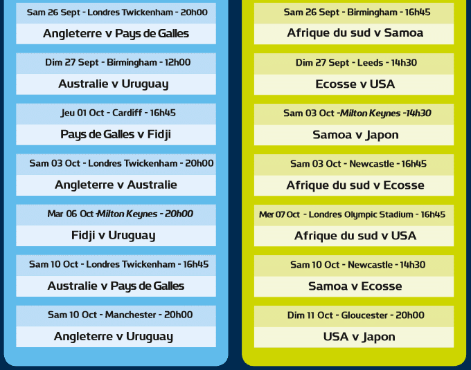 CALENDRIER DES MATCHS de la coupe du monde de rugby