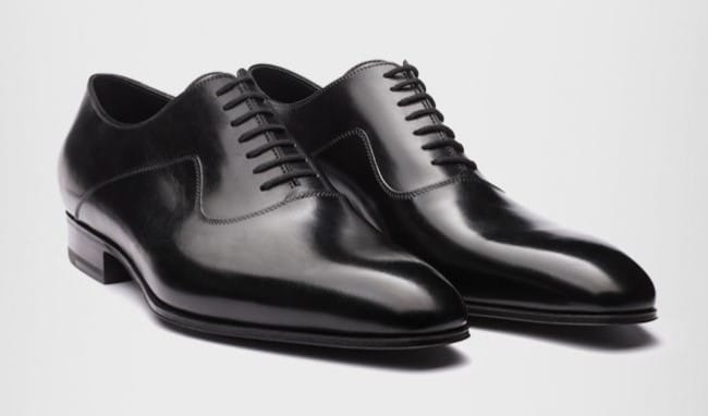 Contrairement aux costumes, il semblerait qu’il est choisi de rester dans du très classique, à savoir une paire de Weston modèle Richelieu. Plus particulièrement le modèle Richelieu 7 œillets VEAU BOX NOIR COLLECTION BLACK TIE de chez Weston. C’est en effet une valeur sûre de l’artisanat Français de luxe. Ces chaussures se caractérisent par leur style, plutôt élégantes, par leur finesse aux pieds, par leur confort et leur robustesse.