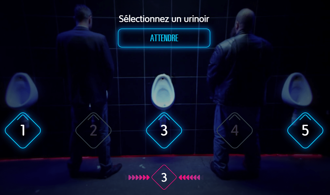 Autre situation à laquelle nous avons été bien des fois confrontés : les toilettes d’un bar de nuit….L’ambiance est chaude, les gens un peu éméchés, vous entrez dans les toilettes, le choix de l’urinoir est bien souvent cruciale. Il faut s’armer de sang froid pour éviter les embrouilles ou les plans galères du style : le mec bourré qui veut discuter, le gars ivre mort près à vomir ses tripes ou encore le biker bien décidé à déclencher une bonne bagarre.