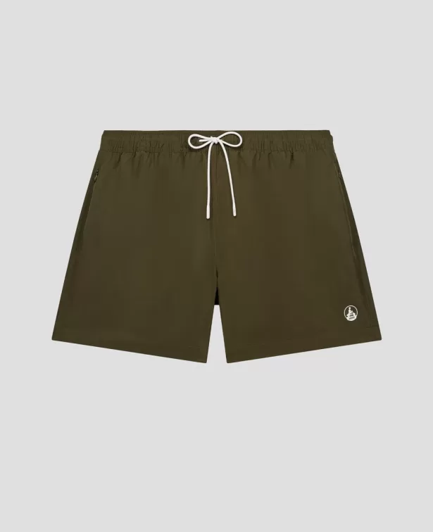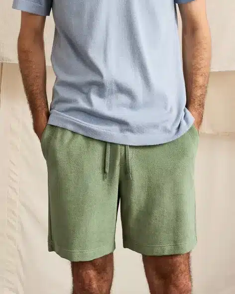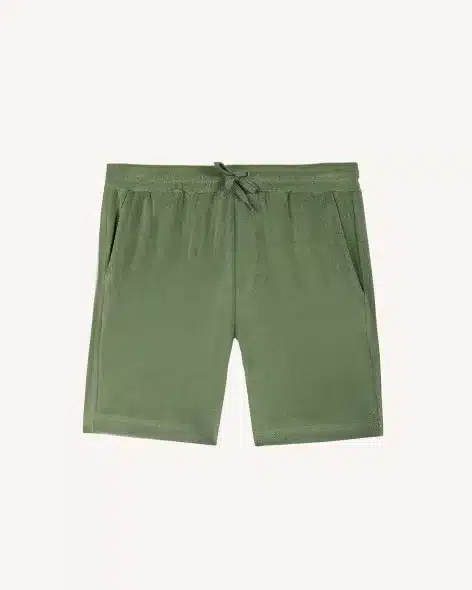 - Le short en éponge kaki CHOUSSY de chez FAGUO est imaginé pour s’adapter aussi bien aux journées en ville qu’aux moments de détente après une baignade.