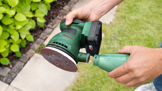 - Puissante ponceuse facile à utiliser pour surfaces planes et courbées de moyennes dimensions.