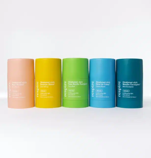 Fabriqués en France, les déodorants Respire sont 100 % d’origine naturelle, vegan, rechargeable et sans sels d’aluminium. Ils respectent la peau tout en assurant une protection efficace tout au long de la journée.