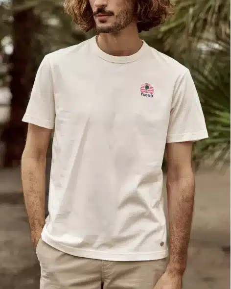 - Le t-shirt écru LUGNY conçu par le studio FAGUO incarne l’allure rétro et décontractée.