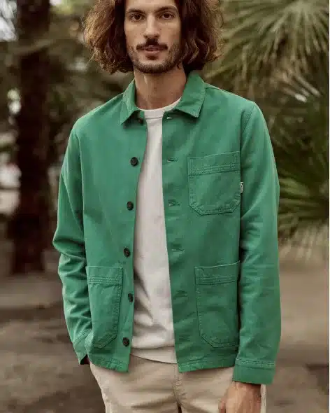- La veste verte LORGE s’inspire du workwear pour revisiter un modèle classique avec une touche moderne et décontractée.