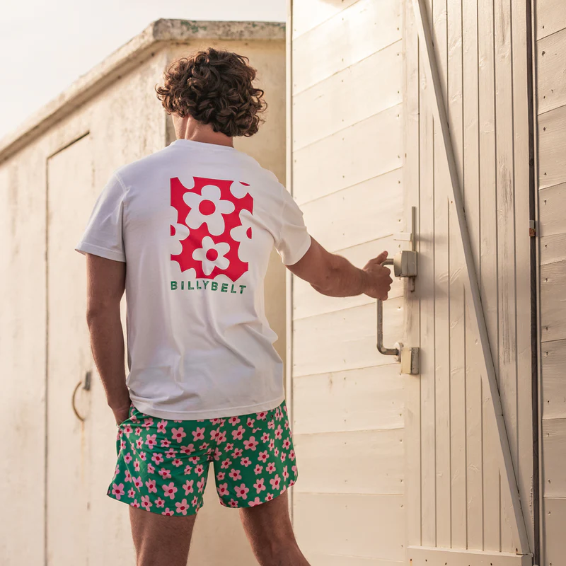 Billybelt propose ses produits sous un panel de motifs et de couleurs, comme on a eu du mal à faire un choix, on vous propose nos derniers favoris. Le t-shirt orange, imprimé vélo : simple mais efficace ! La couleur fait toute la différent. Et enfin, pour varier les plaisirs on a adoré le short de bain à fleurs, même motif que le t-shirt flower, à porter ensemble ou séparément ! Parfait pour les hommes qui assument un style affirmé, mais toujours dans l’esprit chill.