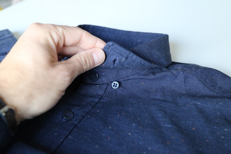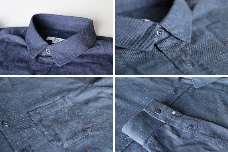 J’adore ce style de chemise pas trop longue qui permet de la porter aussi bien à l’intérieur qu’en dehors du pantalon. Le petit col est également juste parfait pour moi : il fait le contrepoids avec ma « grosse » tête et ma barbe imposante. Ce style de col est d’une élégance folle ! Côté confort, rien à redire. En effet ce coton est très doux et agréable à porter. J’aime aussi l’épaisseur du tissu qui est ici un signe de qualité et de robustesse important à mes yeux.