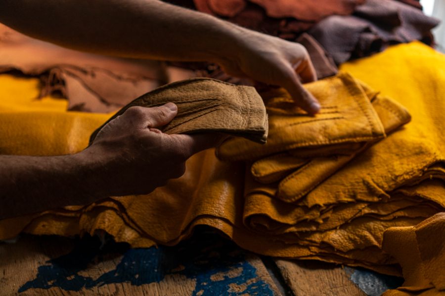 L’ensemble du processus de production (y compris le tannage, la coloration et le traitement) appartient à la tradition artisanale (qui remonte à l’époque romaine) et se déroule aux pieds du Vésuve, sous la supervision étroite de la famille Squillace. La coupe, la couture et le contrôle de qualité sont effectués dans l’atelier situé dans le quartier historique des gantiers, en plein cœur historique de Naples.