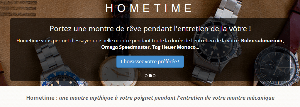 Toutefois, contrairement aux concurrents Hometime.fr vous offre un service de prêt. Ainsi, il vous donne la possibilité de porter une montre de luxe des plus grandes marques pendant le temps que dure la réparation ou la révision de la vôtre. Il s’agit là d’un concept assez révolutionnaire qui vous permet d’avoir à vos poignées vos modèles de rêve en matière d’horlogerie de luxe. D’ailleurs, Hometime propose à ses clients des services complémentaires comme par exemple la vente et l’installation de bracelet, l’expertise et l’évaluation de vos montres, les conseils pour un achat neuf ou d’occasion ou encore les conseils pour la vente de vos montres de luxe. Hometime.fr est également spécialisé dans la vente d’un large éventail d’accessoires horlogers. Hometime vous donne donc la possibilité de vous procurer des coffres forts, des remontoirs, des boîtes à montres et de nombreux outils horlogers.