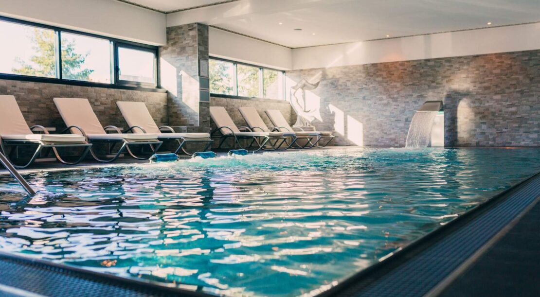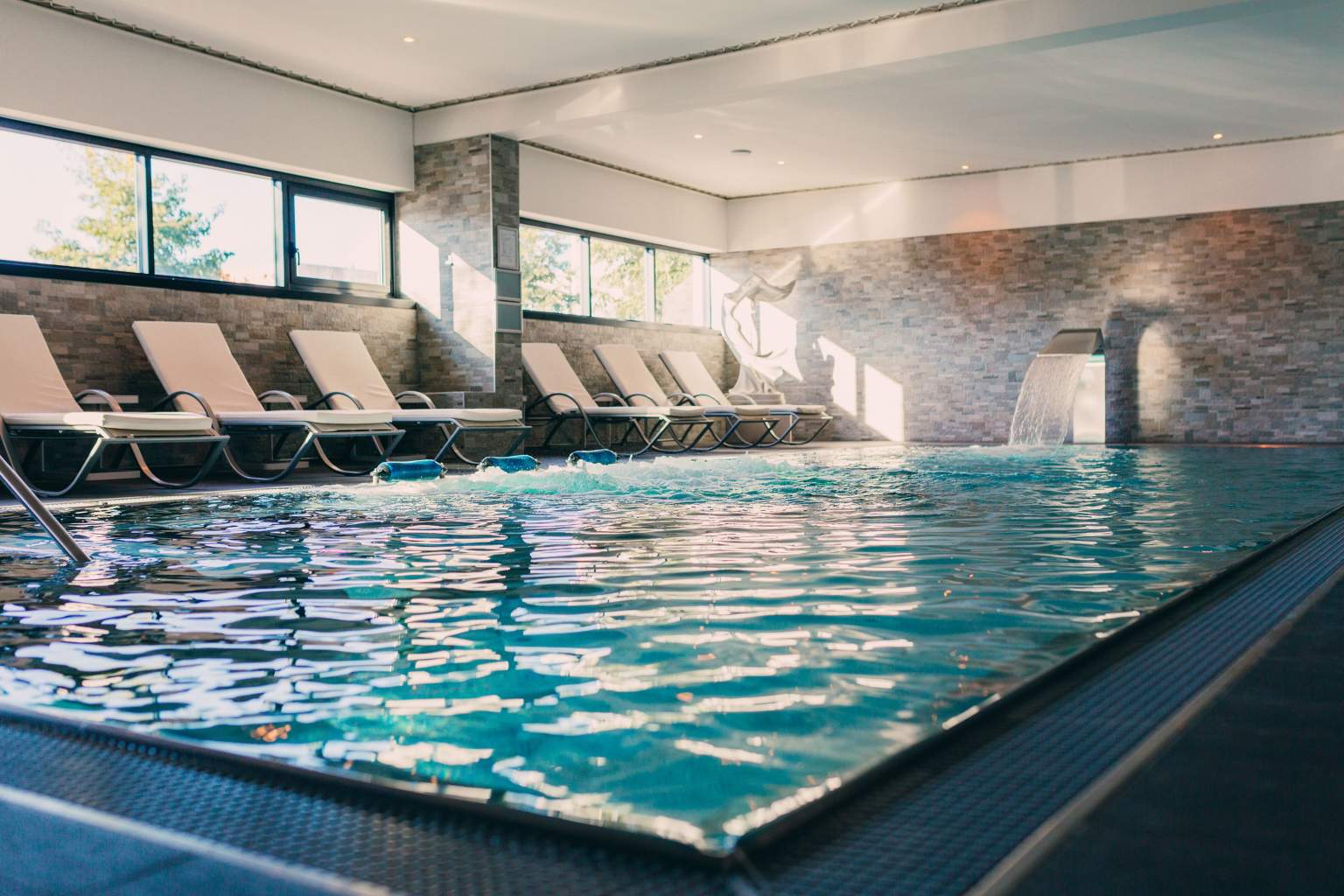 Visite du spa : Cocon ultra design baigné de lumière, l’eau de la piscine de 17 mètres est chauffée à 30 degrés, et ce toute l’année. Véritable éveil des sens, les huiles essentielles sont diffusées dans le sauna en bois de pin ainsi que dans le hammam en mosaïques de carreaux nacrés. De quoi retrouver sa chambre l’esprit apaisé, mais libre à vous de vouloir jouer aux étalons.