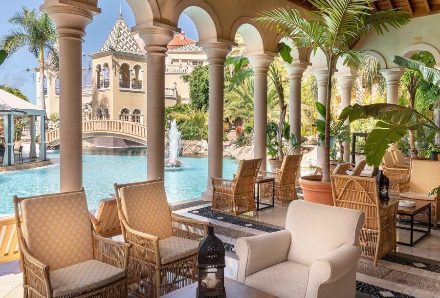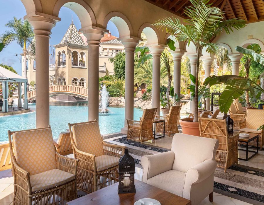 Perché sur une falaise, il déploie son architecture mauresque face à l’Océan Atlantique. Droit devant, à 25 miles marins : l’île de La Gomera. Blottie au cœur de jardins subtropicaux, cette forteresse rouge aux allures de décor de cinéma propose 459 chambres et suites, réparties entre un bâtiment principal, la bien-nommée « Citadelle » et des villas privées à louer.
