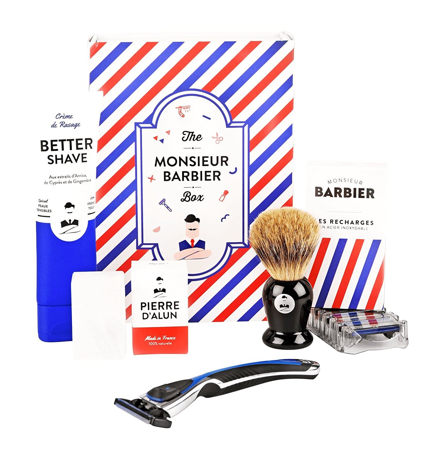 Qui mieux que Monsieur Barbier pour vous fournir le meilleur matériel ? En l’occurrence ce kit barbier est plutôt contemporain avec un rasoir mécanique classique, un blaireau et un série de produits pour un rasage plus que confortable.