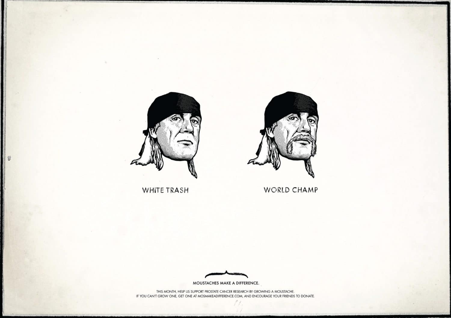 Cette campagne est plutôt maligne en mettant en avant le faire que sans leur moustache, les personnages mythiques ci-dessous ne seraient pas forcément ce qu’il étaient. La moustache est un véritable signe distinctif au même titre que la barbe ou que des lunettes. C’est aussi un signe, une preuve de virilité que l’on porte fièrement dès le plus jeune âge dans certains pays. Cela était le cas chez nous il n’y a pas si longtemps que ça 🙂